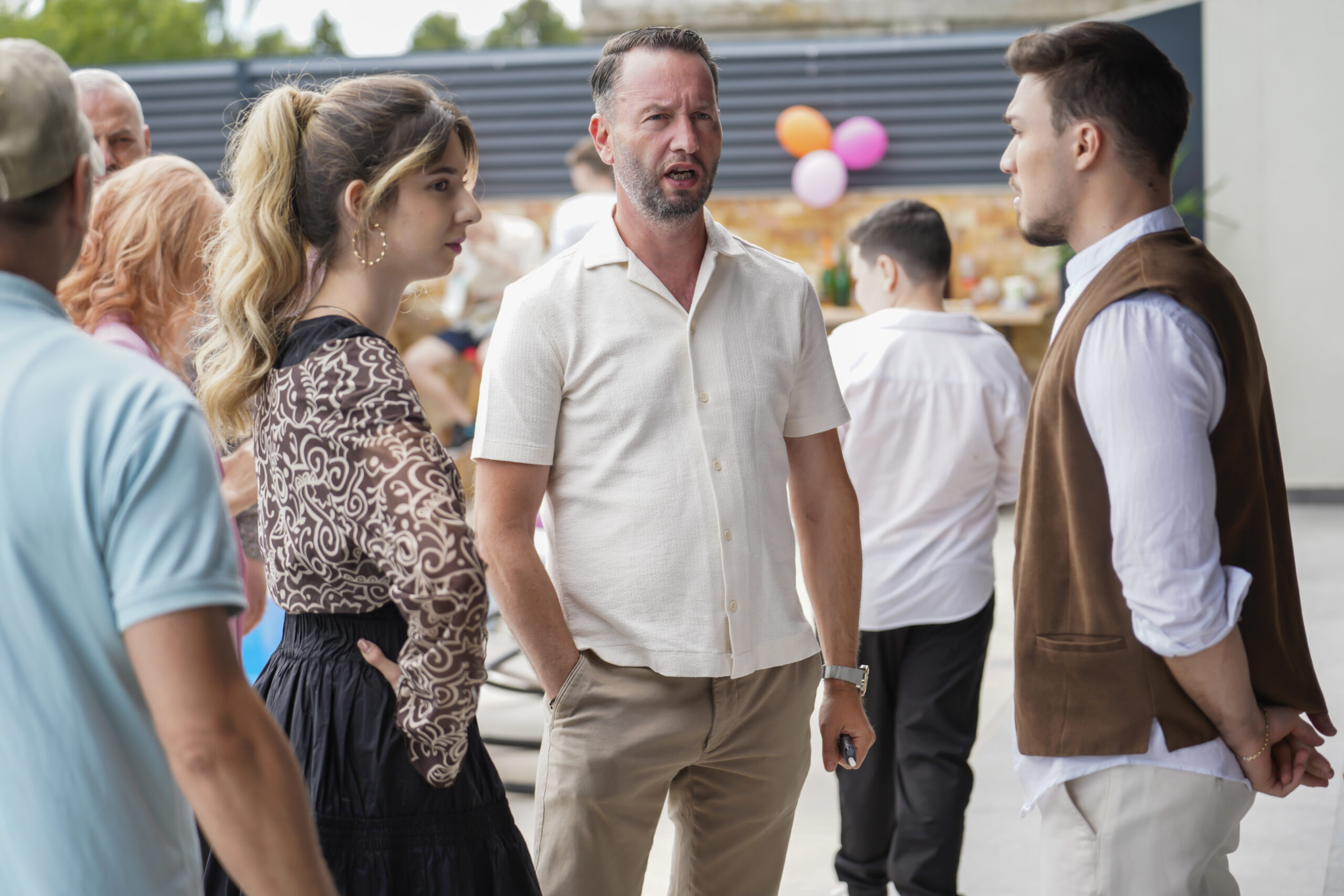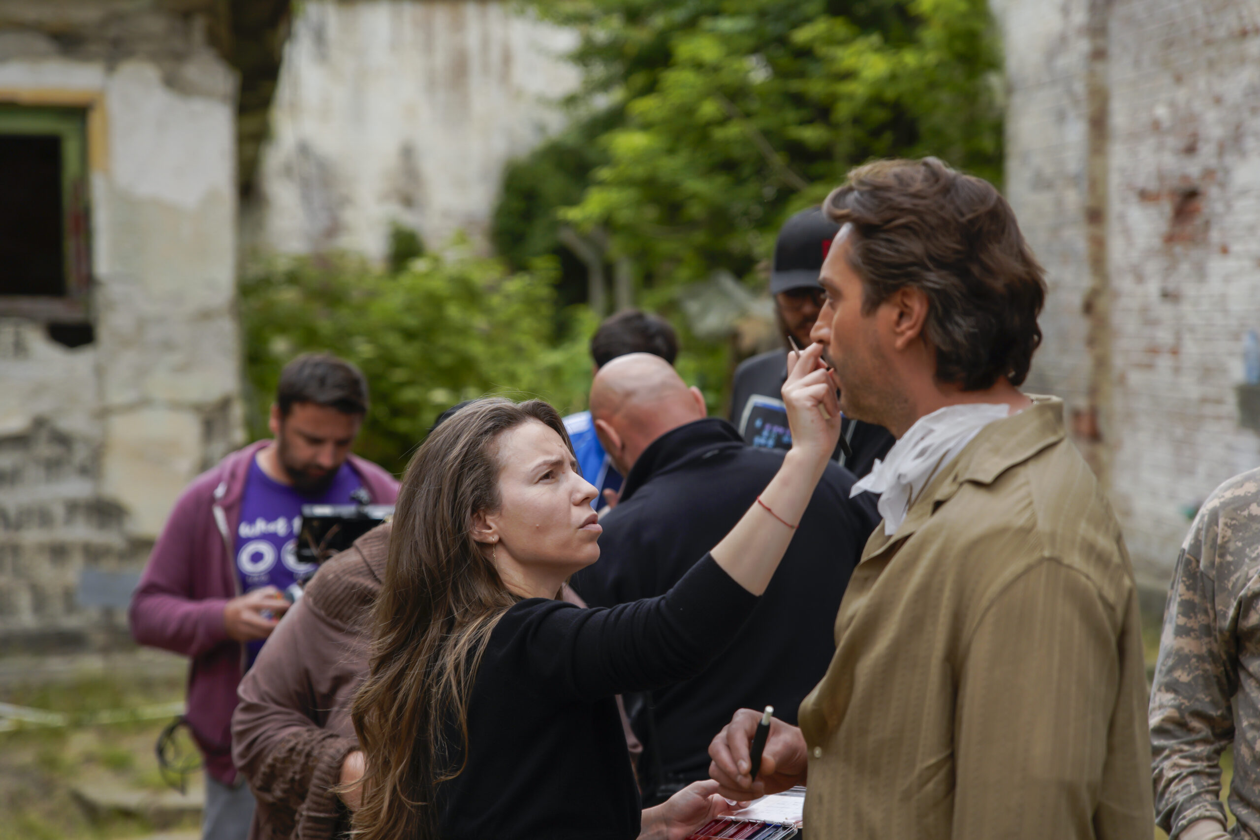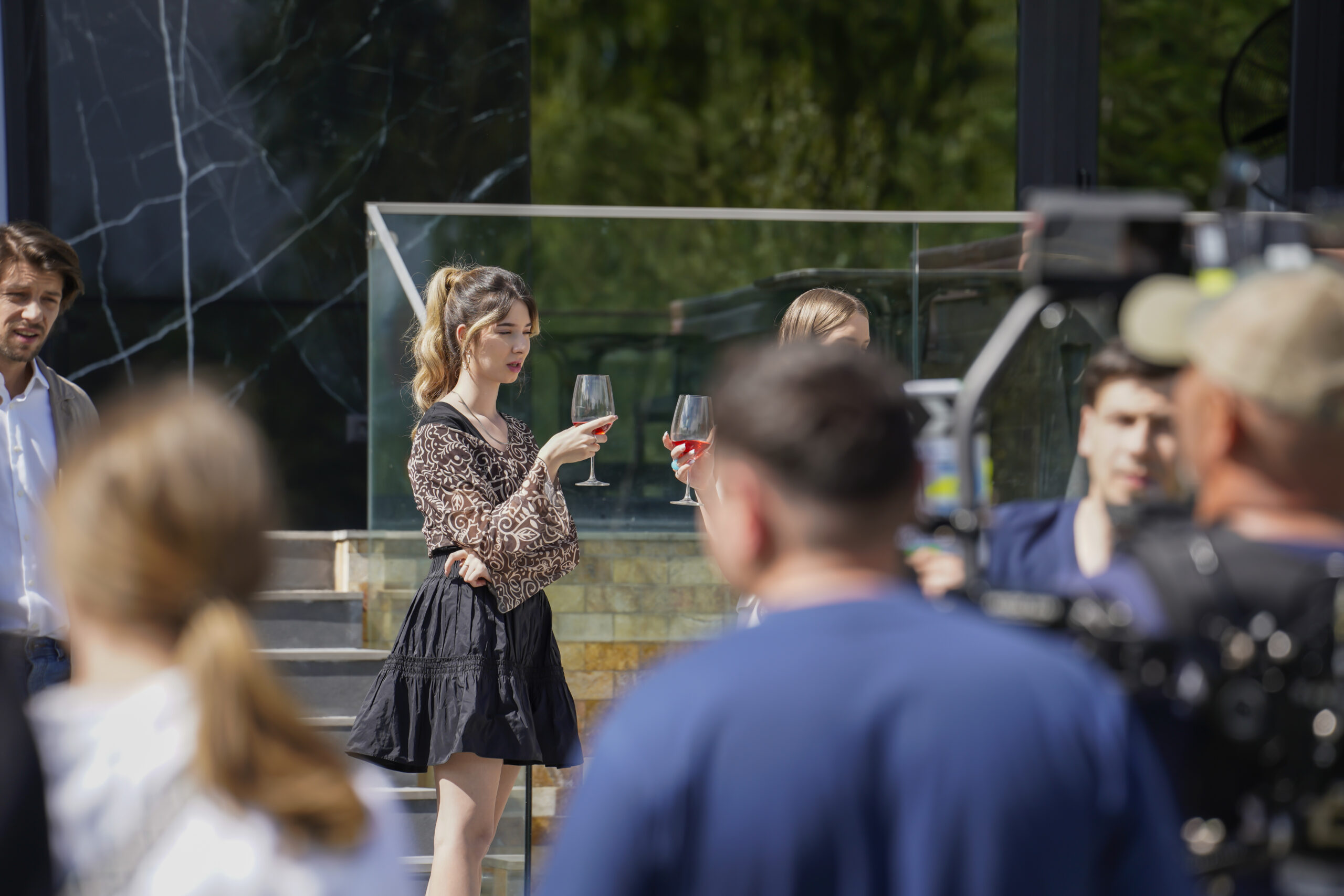 Prima zi de filmare a fost cea mai grea pentru toată echipa. Temperaturile extreme – caniculă afară și frig în interior – au pus la încercare atât actorii, cât și echipa tehnică. Schimbările rapide de costume, adaptările constante și improvizațiile au devenit parte din viața noastră de pe set. Am avut norocul ca scena mea să fie programată la finalul zilei, așa că în restul timpului am putut să ajut echipa și să observ tot procesul, lucru care m-a învățat enorm despre ce înseamnă munca de producție.